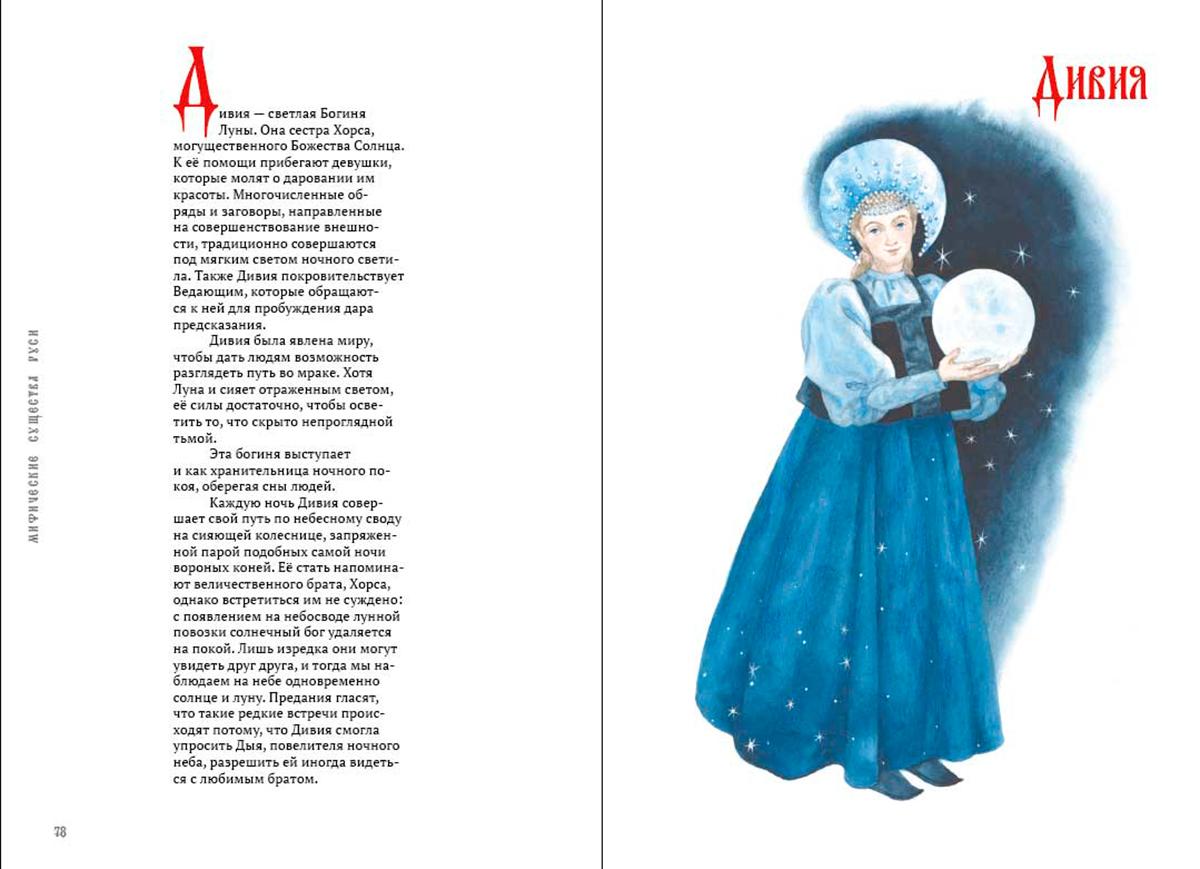 Это именно бестиарий, а не сборник сказок. Описания существ даны в алфавитном порядке. В этой книге собраны наиболее известные персонажи мифического мира. Издание погружает в чарующую атмосферу русской мифологии и культуры. Читателя ожидает встреча с божествами славянского пантеона, от Авсеня до Ярило. Также на страницах книги «обитают» существа из низшей мифологии наших предков и герои, которые знакомы нам по сказкам — обаятельная нечисть всех мастей.